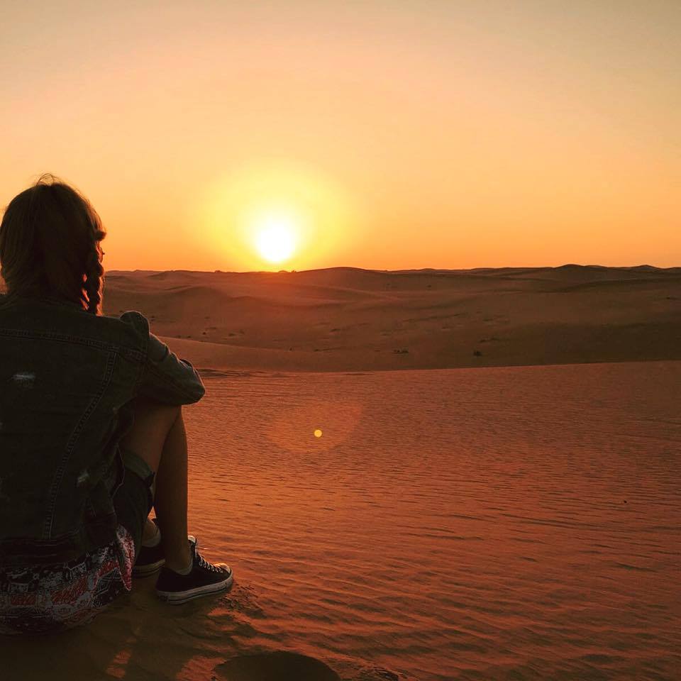 En las imágenes que se aprecian en su cuenta oficial de Facebook, la feliz pareja tuvo la oportunidad de ser testigo de un magnífico atardecer en el desierto de Dubái.