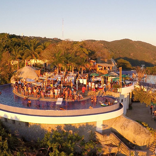Hannah está construido a manera de oasis pues está rodeado de una increíble piscina a modo de círculo que deja en medio el lounge, ideal para relajarse, comer, beber algún trago especial de la casa y sacar tus mejores pasos disfrutando del set del DJ.