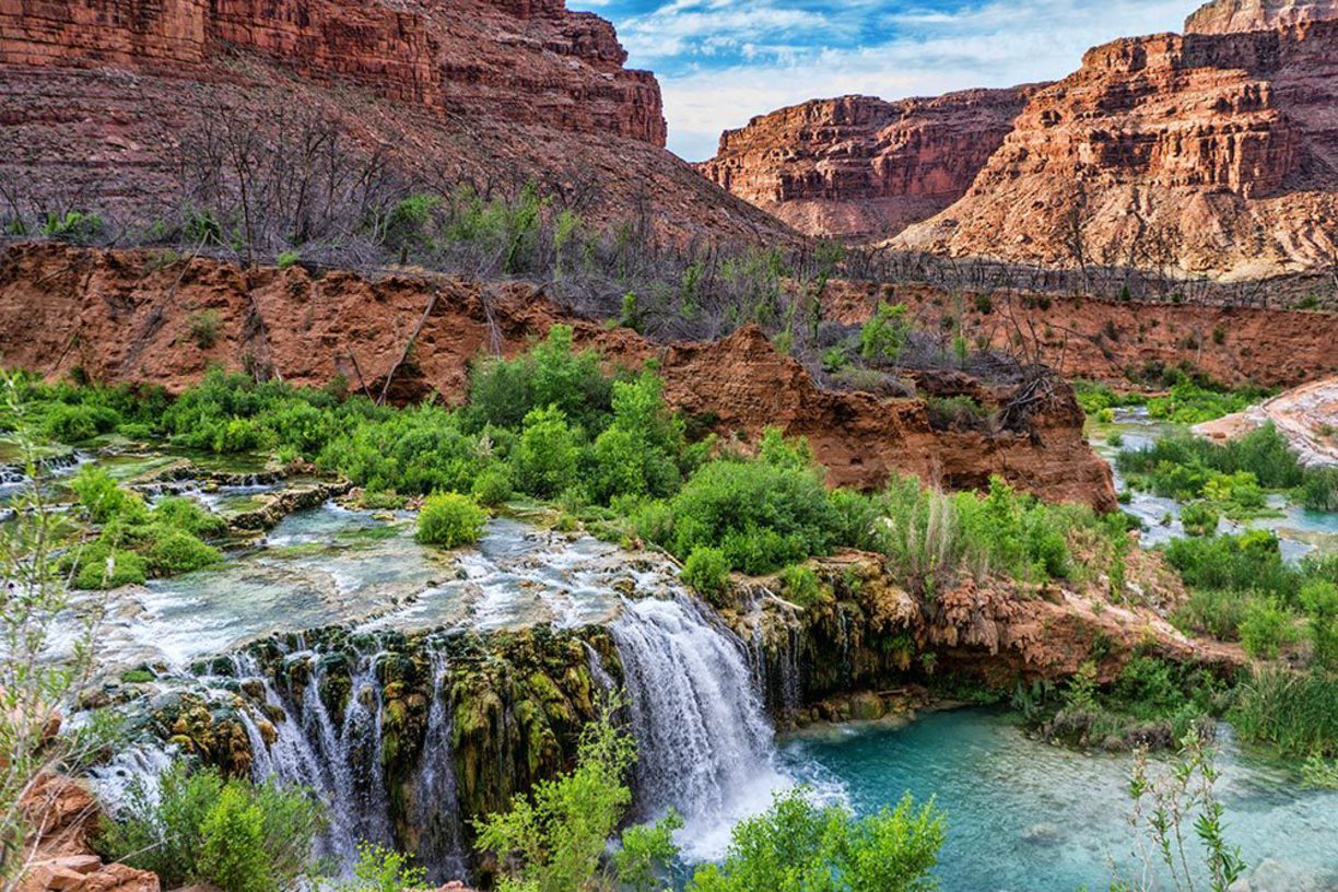 Localizadas al sur del Parque Nacional del Gran Cañón, está Havasu Falls una zona llena de hermosas cascadas y profundos cañones, en las que suceden una serie de albercas naturales con aguas color turquesa, resultado de su alta mineralización, mismo que contrasta con las tierras rojizas.