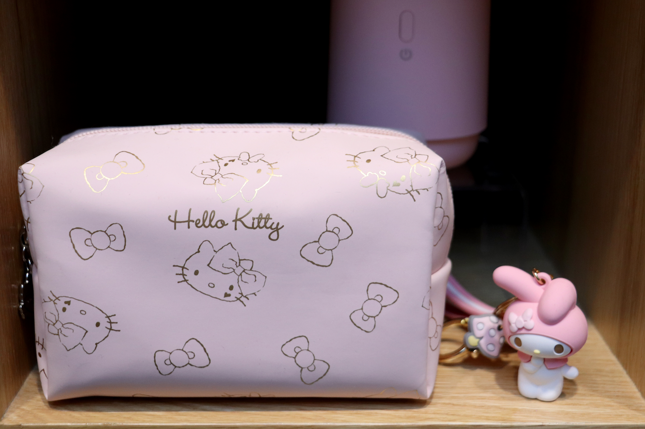 Además, también podrás encontrar algunos productos con los amigos de Kitty, como estas cosmetiqueras de Gudetama, o este llavero de My Melody.