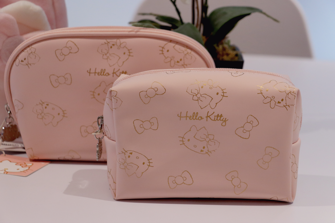 En una paleta de colores que abarca varias tonalidades de rosa, en la colección de Hello Kitty encontrarás cosmetiqueras, llaveritos, bolsitas, almohadas de viaje, audífonos, perfumes y… ¡maquillaje!