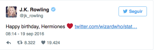 Para todos los fanáticos de Harry Potter, el 19 de septiembre es una fecha muy especial; y que de acuerdo a la escritora J.K. Rowling, hoy el personaje de «Hermione Granger» está cumpliendo años.