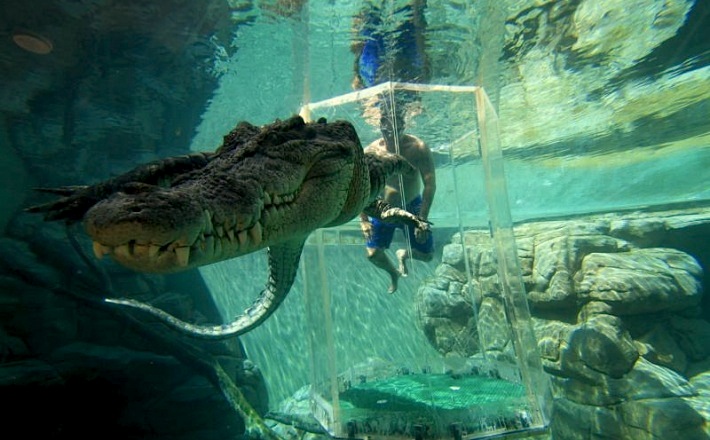 Crocosaurus Cove, localizado en Darwin, Australia, permite a todos sus visitantes tener una de las experiencias con más adrenalina, ya que podrán estar en contacto directo con cocodrilos.