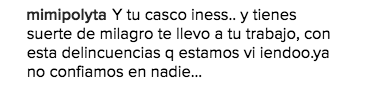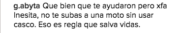 Fue así como entre el tráfico, Inés decidió grabar su aventura y compartirla a través de su cuenta de Instagram, junto con un mensaje en el que se lee: «Estoy buscando a este hombre que hoy me salvó. Si alguien lo reconoce díganle que le debo una, pues la lateral estaba parada y no llegaba a mi llamado y antes de que @ncanun me dijera algo, pues que me trepo a una moto para poder llegar a mi enlace. Todo sea por no llegar tarde a trabajar. Gracias alma piadosa por ayudarme jajajaja y no pensar que te iba a robar la moto. Fue un trayecto muy corto pero seguro».