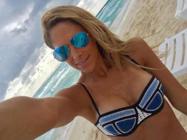 Las imágenes van acompañadas con el siguiente mensaje: “Hoy disfrutando de #Cancún gracias @OfficeDepotMex por la invitación. Combinando trabajo con placer” (sic).