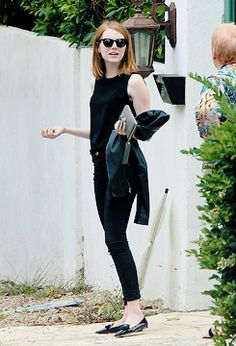 Crop top: Emma es bien conocida por usar esta pieza sin enseñar su vientre, esto lo puede hacer gracias a pantalones de tiro alto. Sus crops son de colores lisos y obscuros.
