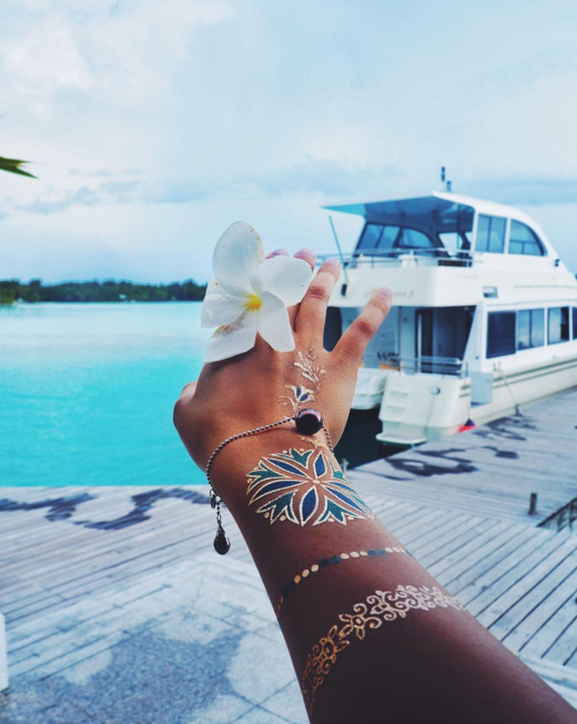 Por si te escapas a la playa durante estos días, recuerda que los trajes de baño con colores muy vibrante (ya sea completo o bikini) son la mejor opción, atrévete a usar crop tops con cuellos halter y por último, los tatuajes metálicos temporales se colocan como los favoritos.