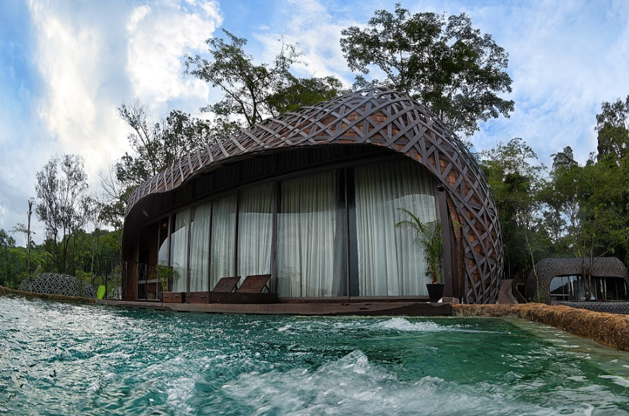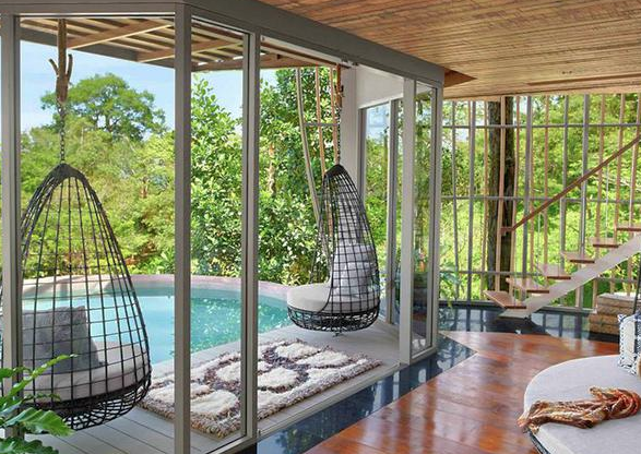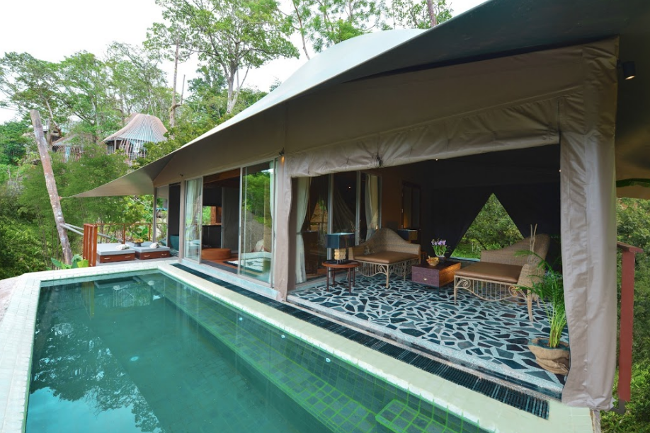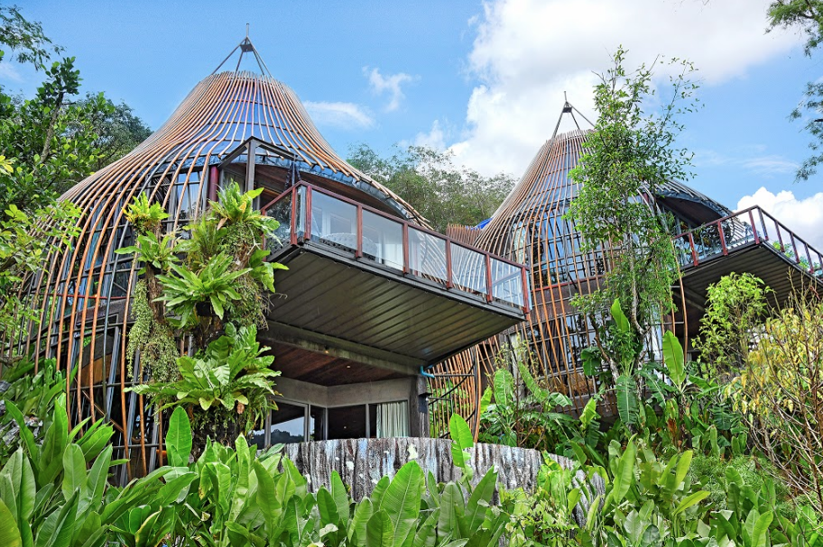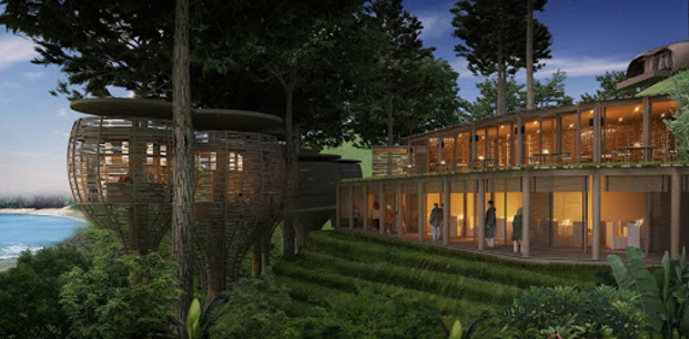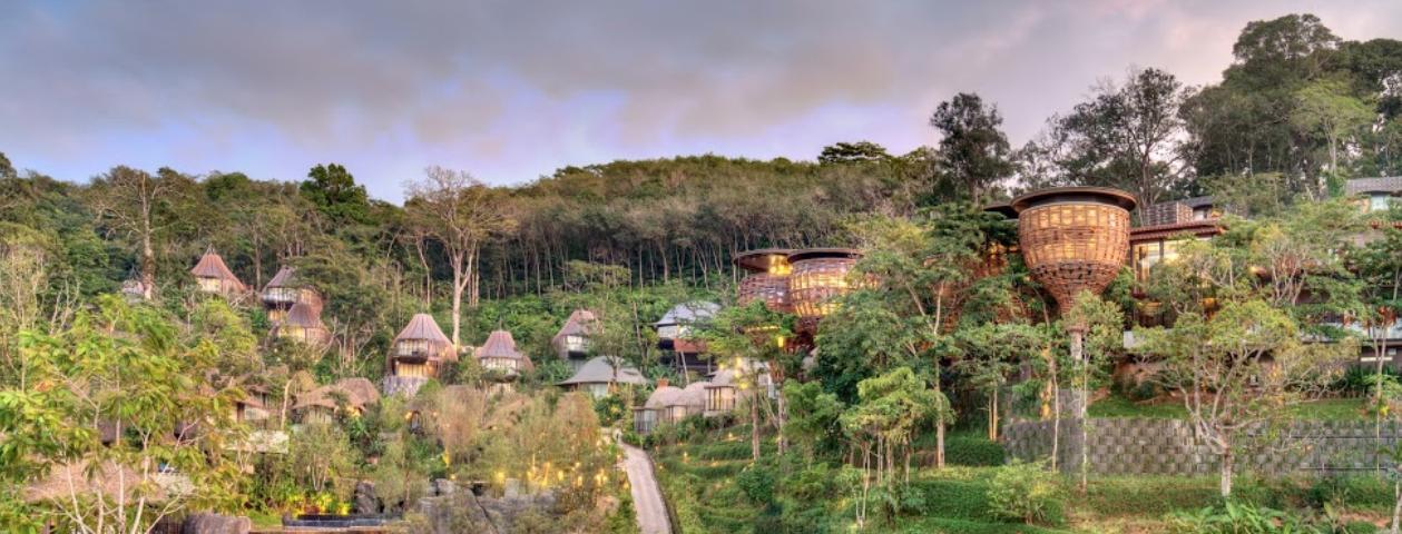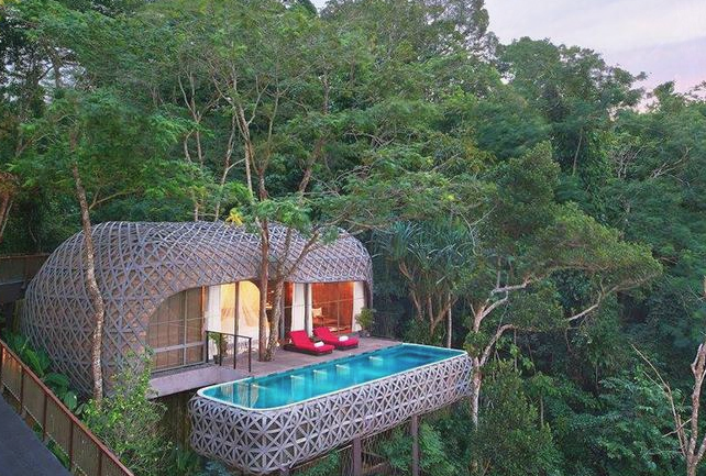 Este Hotel en Tailandia, está en una de sus provincias meridionales. Es un hotel único en su estilo, esta dentro de la selva en la isla de Phunket. Con habitaciones en siete árboles da la apariencia de estar suspendidas desde el propio dosel. Con arroyos cascadas que van alrededor de el.