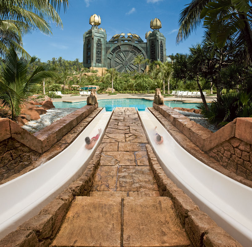 ¿Por qué es el favorito de las celebridades? Atlantis Paradise Island no sólo posee las amenidades de un hotel, pues cuenta con un campo de golf, spa y un parque acuático, en donde podrás subirte a los toboganes y demás aventuras marinas, como nadar con los delfines.