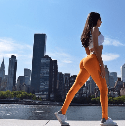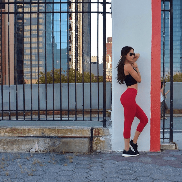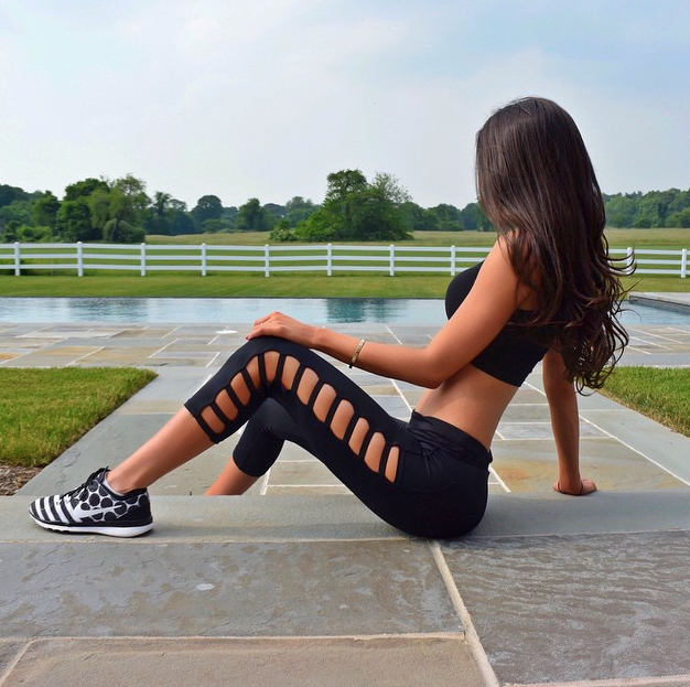 Entre su armario, podemos encontrar diferentes tipos de outfit con los que se ejercita, pants totalmente lisos, los que usa son totalmente skinny y en ocasiones también usa shorts en licra. Sus looks siempre son conjuntos y combinaciones totales.