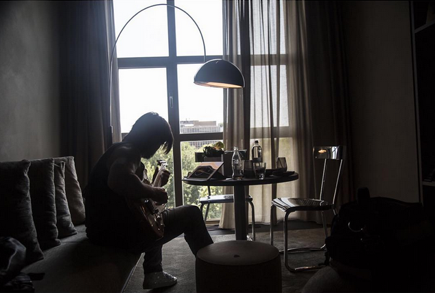 El cantante se encuentra en Milán y sin dar más explicaciones al pie de la fotografía, sólo está viendo hacia la ventana y da la espalda al público. Con esta pose podemos recordar la escena de la película ganadora del Oscar, Birdman.