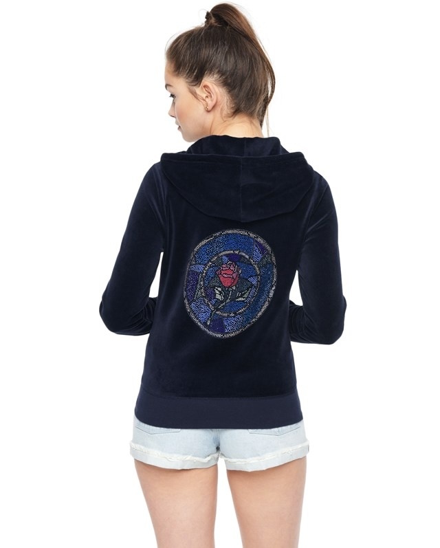 Esta mágica y cómoda colección cuenta con dos sudaderas las cuáles tienen incrustadas miles de cristales de Swarovski, los que dibujan la emblemática rosa de la película y el famoso logo del cuento.