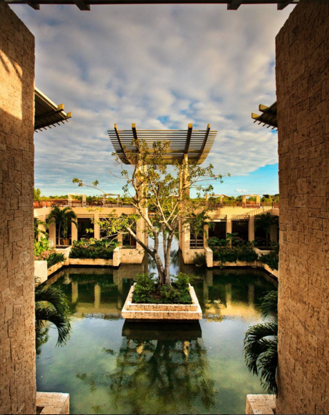 Situado al centro de un lago y cerca de la playa, el hotel Mayakoba ofrece una vista que deleita la pupila con una gran cantidad de peces y aves del lugar. Está ubicado dentro de un complejo residencial privado de desarrollo integrado del grupo en una parte de la costa virgen de la Riviera Maya.
