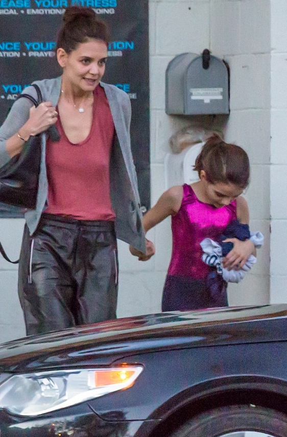 Por su parte, la hija de Tom Cruise utilizó un Body Suit en color fiusha y unos leggings en azul marino, ideales para su clase de baile.