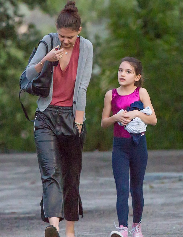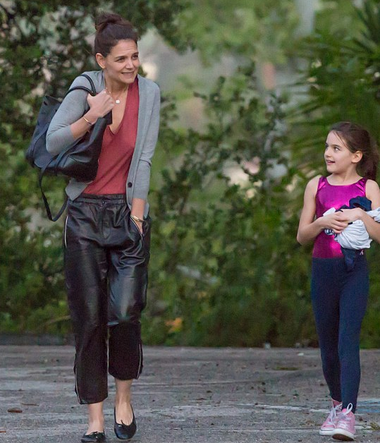 Aunque Holmes se cubrió con un suéter de color gris, este no fue suficiente para que la actriz de Hollywood, sorprendiera a todos los padres de familia y a las profesoras, cuando llegó por Suri.