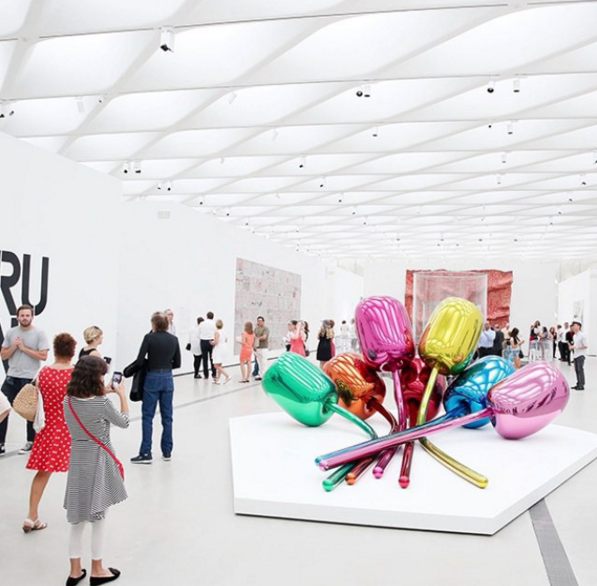 La cantante vistió súper chic con un outfit en tonos terrenales, un top de ante y una maxi falda, pero ella quedó totalmente maravillada con las instalaciones de varios artistas, una de ellas fue la de la japonesa Yayoi Kusama con su Obsesión Infinita.