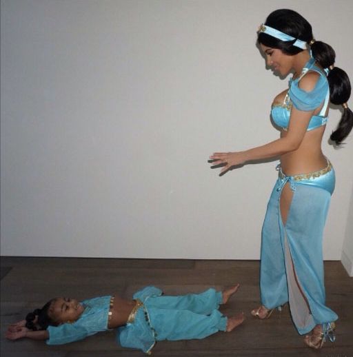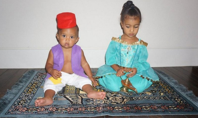 El tema este año para la familia West-Kardashian fue Aladdin, así que Kim y North optaron por convertirse en Jasmin, mientras que el pequeño Saint fue un adorable mini Aladdin.