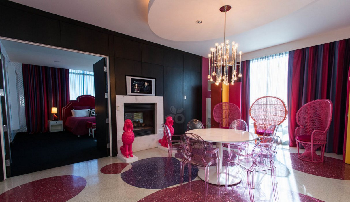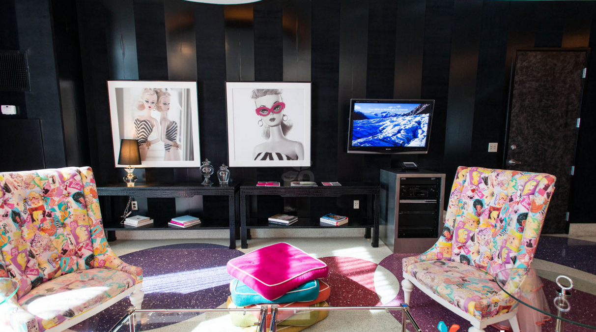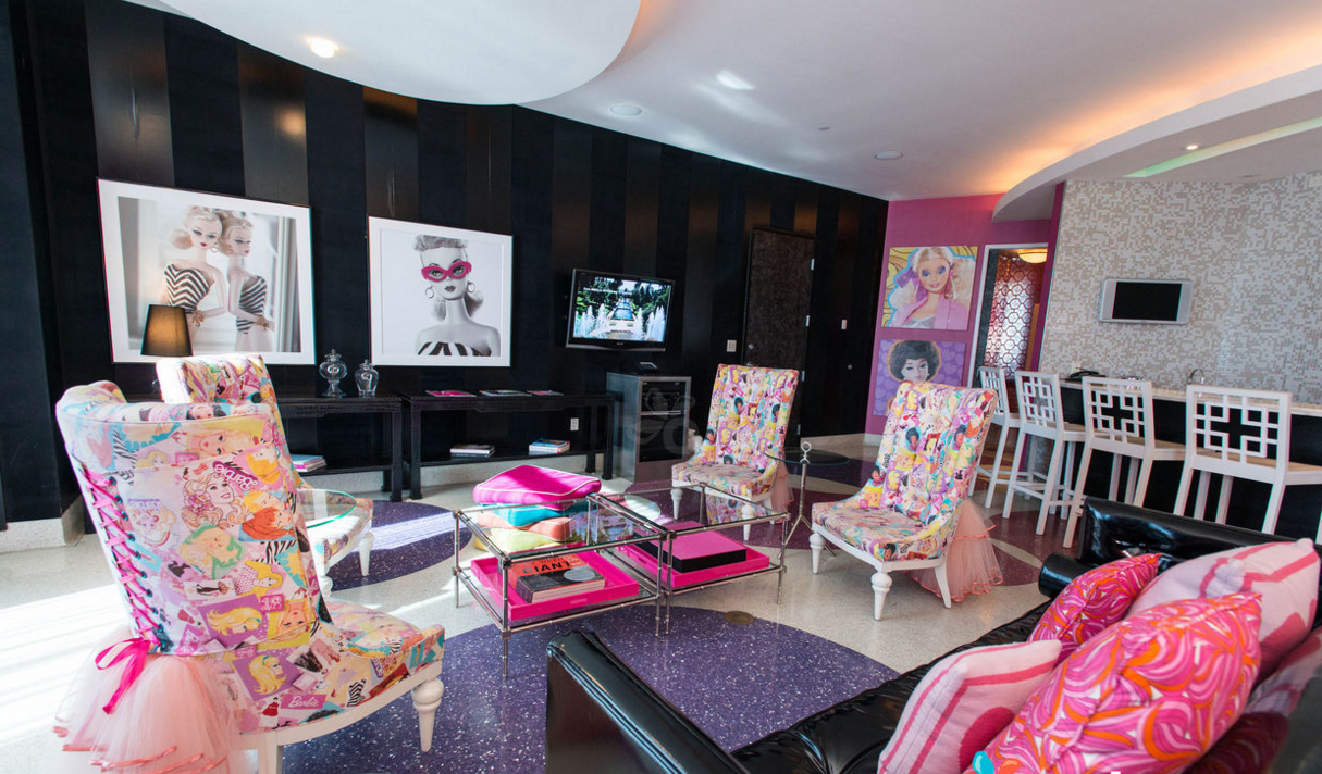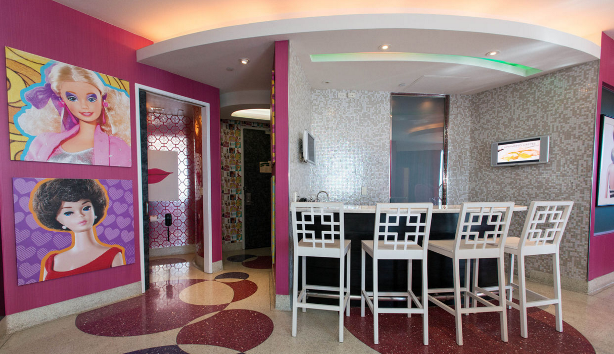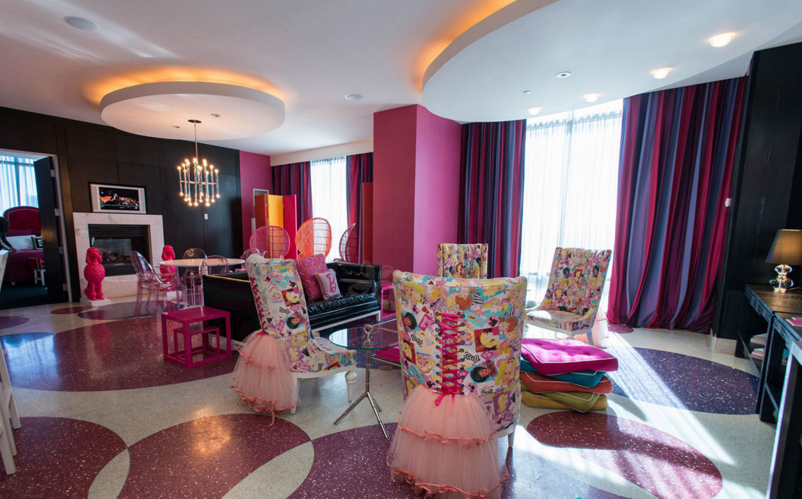 La suite es tan grande como un lujoso departamento, pues además del dormitorio, que tiene ¡tres enormes camas!, podrás beber los cocteles más girly en la sala, que está decorada en tonalidades rosas y tiene exclusivo arte de Barbie que no encontrarás en ningún otro lado. También cuenta con tres baños para que tú y tus invitadas siempre estén cómodas, chimenea, sauna, y un jacuzzi ideal para beber champagne mientras te das un baño de burbujas.