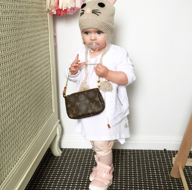 Entre las marcas que utiliza esta pequeña fashionista están Burberry, Kardashian Kids, Louis Vuitton, Adidas, Nine West y Marc Jacobs, quien le ha pagado por ser la imagen de sus zapatos.