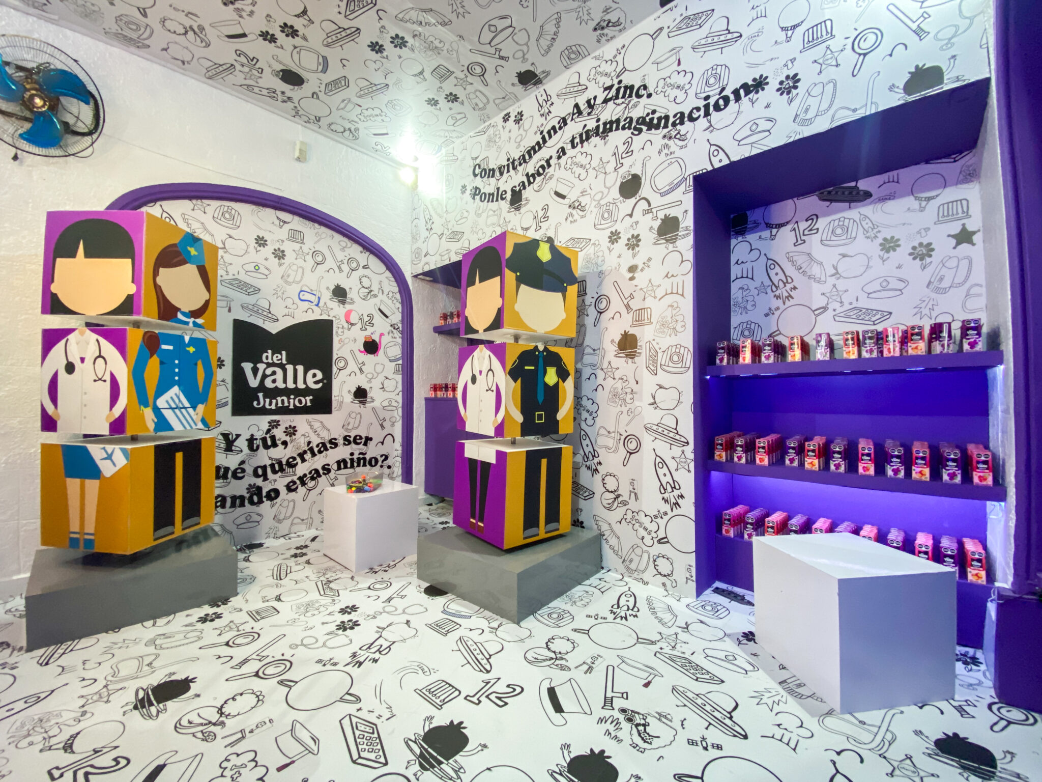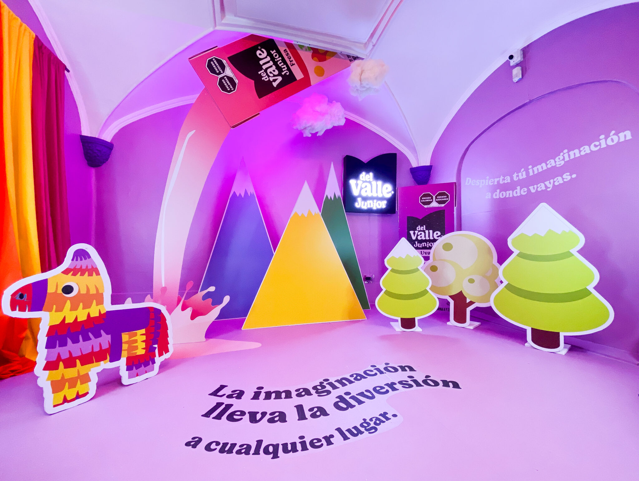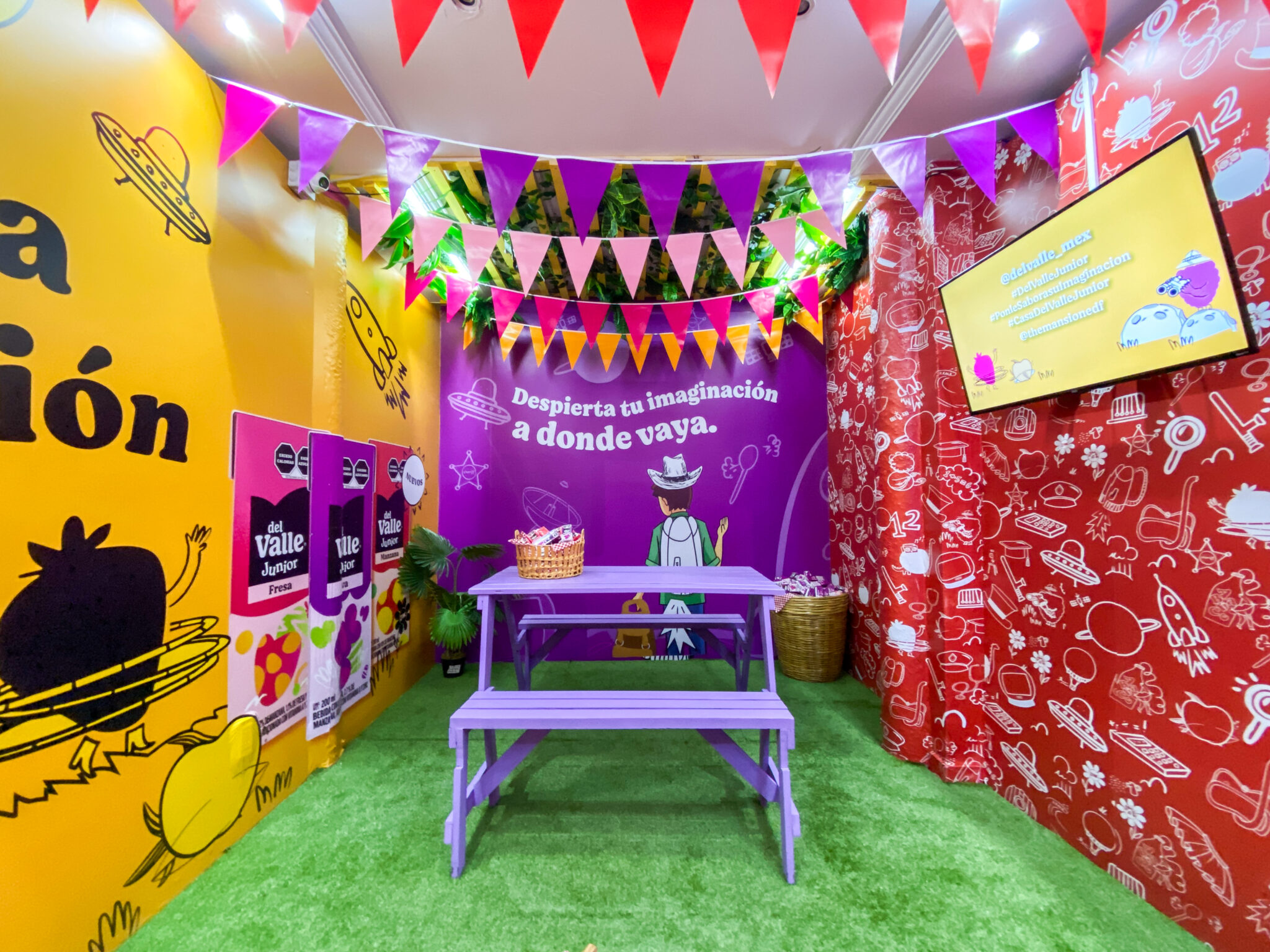 El área de convivencia familiar invita a un picnic entre cojines, mantas y, por supuesto, jugos Del Valle Junior. Un espacio para compartir, reír y conectar, donde cada sorbo se mezcla con creatividad y cariño.