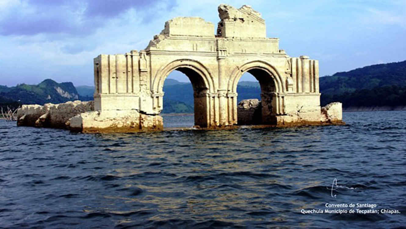El río Grijalva ha sufrido el impacto de las bajas lluvias y la sequía, ya que su nivel ha disminuido 25 metros. Aunque los pobladores de Quechula están preocupados por los cultivos, también se muestran sorprendidos por los restos de una iglesia que ahora emerge de las aguas.