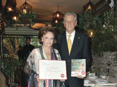 Susanna Palazuelos fue homenajeada en el Restaurante Mar del Zur, debido a su gran labor y trayectoria en el mundo gastronómico. La chef de origen guerrerense recibió el premio Best Of The World, de los Gourmand Awards, en Yantai, China, en la categoría Entretainment por su libro, Mis Menús Favoritos, el cual se ha convertido en #1 a nivel mundial. A la celebración asistieron amigos, Eduardo Wichtendahl, hijo de Susanna y Lolita Ayala, entre otros. Cabe recalcar que además de la gastronomía, Susanna, es una mujer de corazón altruista ya que es delegada estatal de la Cruz Roja Mexicana. Fue una noche llena de buenos deseos hacia la autora de algunos de los mejores libros de cocina mexicana a nivel mundial, como Mexico, The Beautiful Cookbook, entre otros.