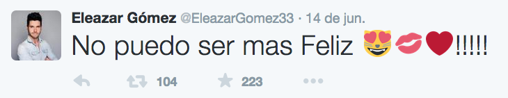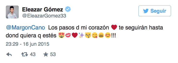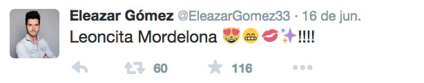El guapo actor dio a conocer a través de su cuenta de Twitter lo contento que se encuentra con su nueva novia, Margón Cano, inclusive demuestra lo cariñoso que es con su nueva Leoncita, apodo que le concedió Eleazar a Margón.