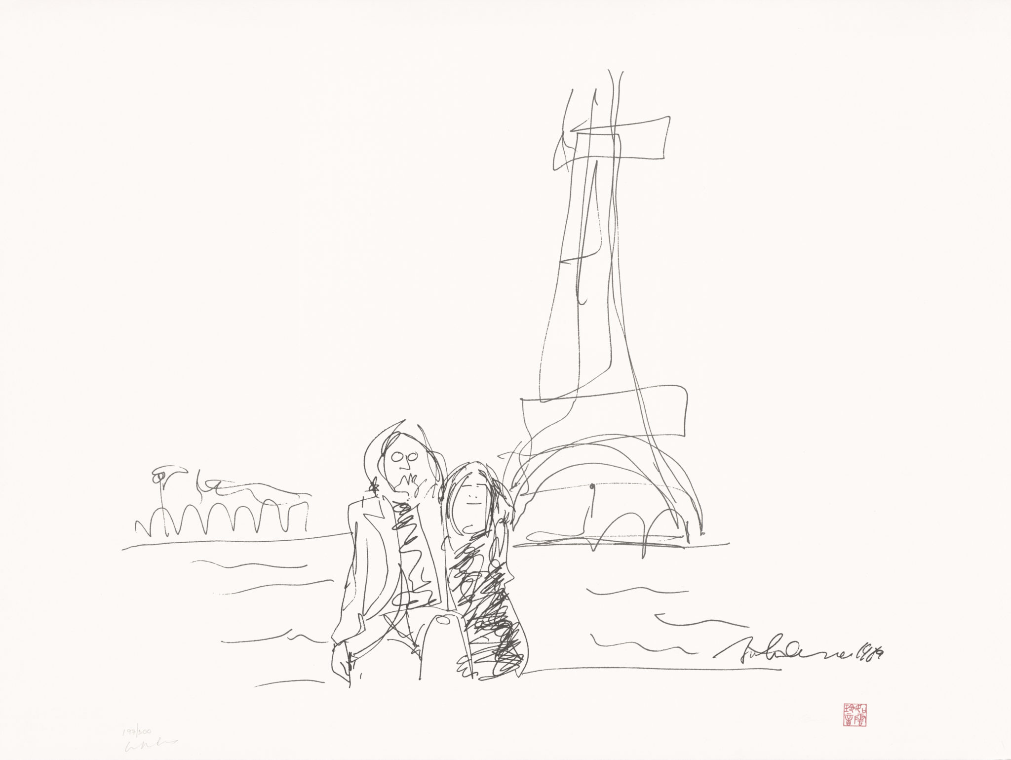 Entre las piezas más destacadas se encuentra la serie «Bag One», una colección de dibujos que capturan momentos íntimos y personales de su vida con Yoko Ono, y que provocaron controversia y censura en su época.