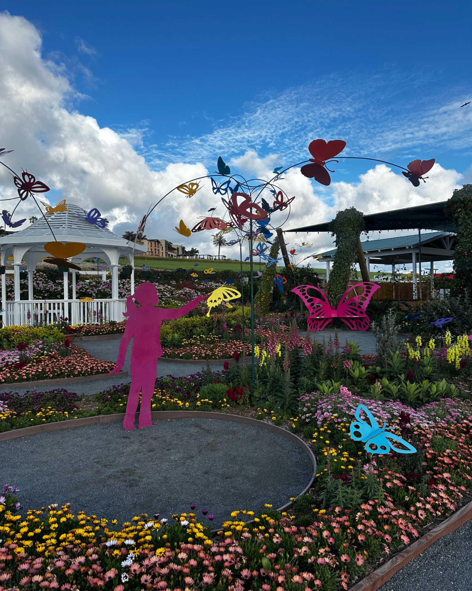 Butterfly Garden ¡Para los amantes de las mariposas! Podrás pasear en este increíble jardín lleno de flores y esculturas de mariposas. ¡No olvides tomarte fotos en el quiosco!