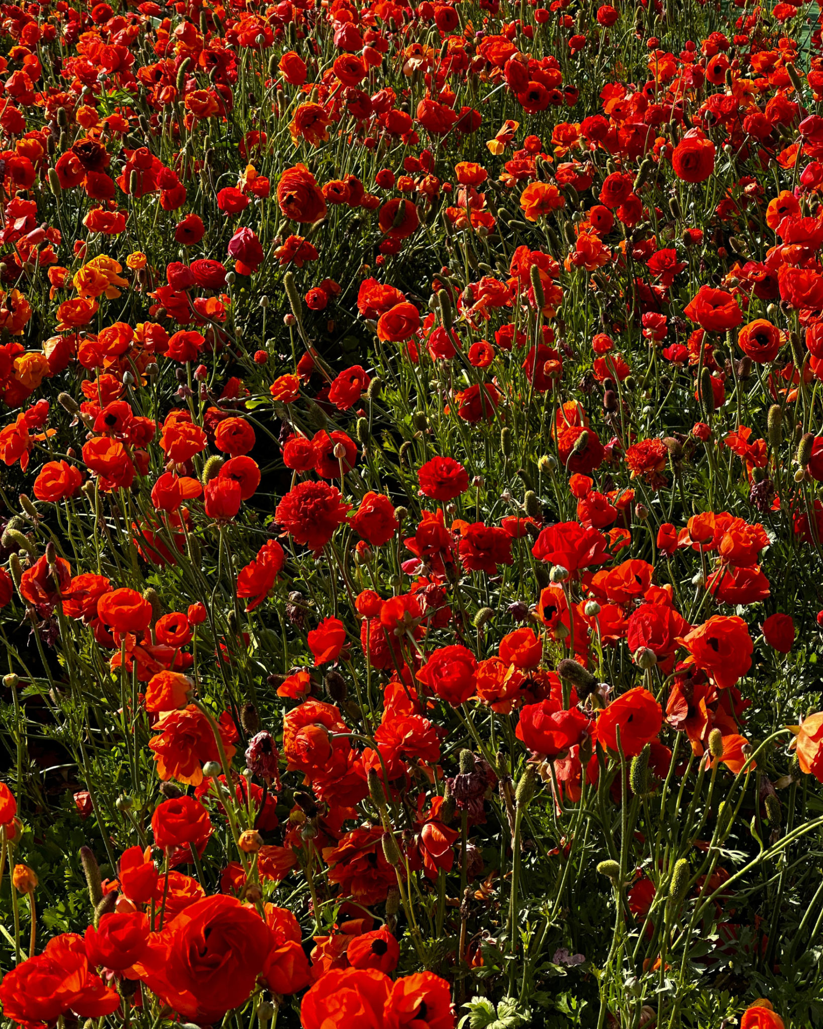 Cada primavera, Flower Fields se llena de color debido a que millones de flores de ranúnculo comienzan a florecer. Con sus colores vibrantes, que incluyen rosa, amarillo, rojo y púrpura, crean un espectáculo visualmente deslumbrante.
