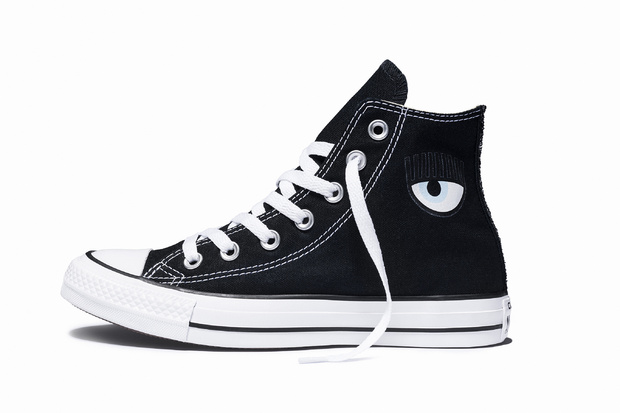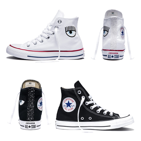 Se trata de dos sencillos y clásicos Converse de bota (uno blanco y uno negro) que cuentan con los ojos azules de The Flirt de Chiara Ferragni Collection, situados en paralelo a los parches de All Star. La guapísima italiana les ha agregado un toque de glitter en la banda de la zona posterior, un detalle que ha acompañado a sus prendas desde su primera colección.