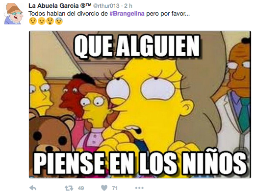 Twitter, Instagram y Facebook se han convertido en el centro de las bromas para el divorcio de entre Angelina Jolie de 41, y Brad Pitt de 52 años, luego de que la actriz afirmara que no consideraba a bien el trato que le daba Pitt a sus seis hijos.