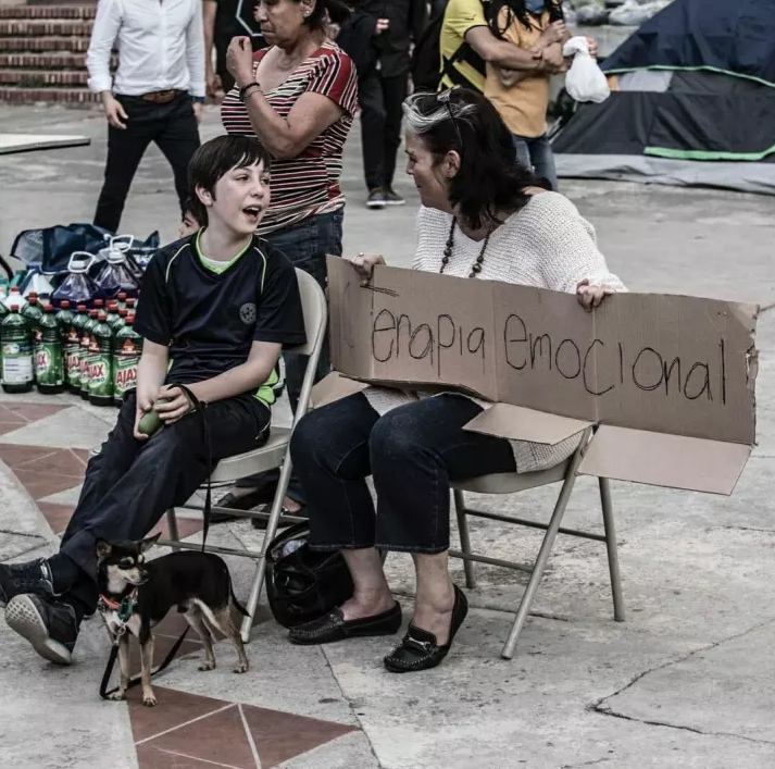 No importa la edad que tengan o la función que hagan. Muchos de ellos no pueden cargar los pesados escombros, pero a cambio recolectan víveres, ofrecen apoyo emocional o facilitan la comunicación (como unos ingeniosos vecinos que brindan desde su ventana un multicontacto para que los brigadistas puedan cargar sus teléfonos).