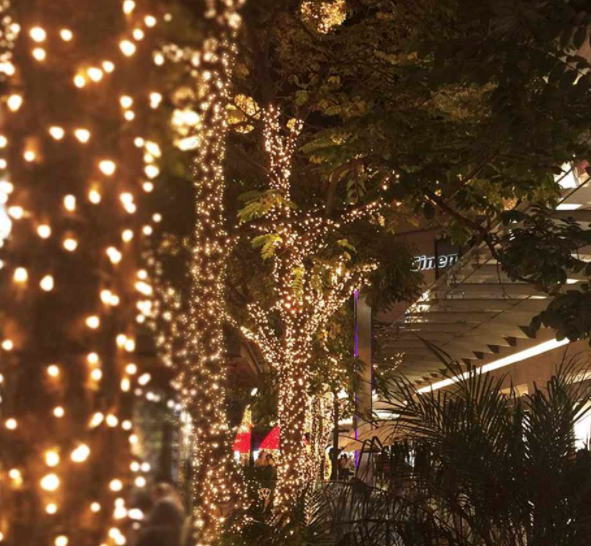 Y si hay un centro comercial que tira la casa por la ventana con su decoración es precisamente éste. Y es que deslumbra a sus visitantes con la instalación de cientos de luces por los pasillos, así como en el techo del lugar con esferas luminosas.