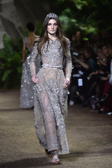 Uno de los desfiles más esperados cuando está la Semana de la Moda Alta Costura en París es Elie Saab, pues sus vestidos siempre desprenden romance y el ambiente es como un bosque encantado.