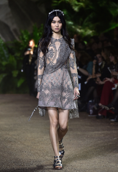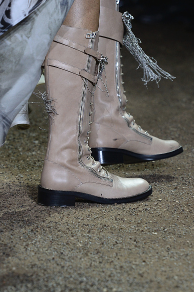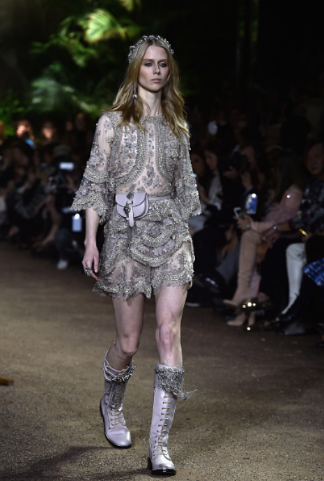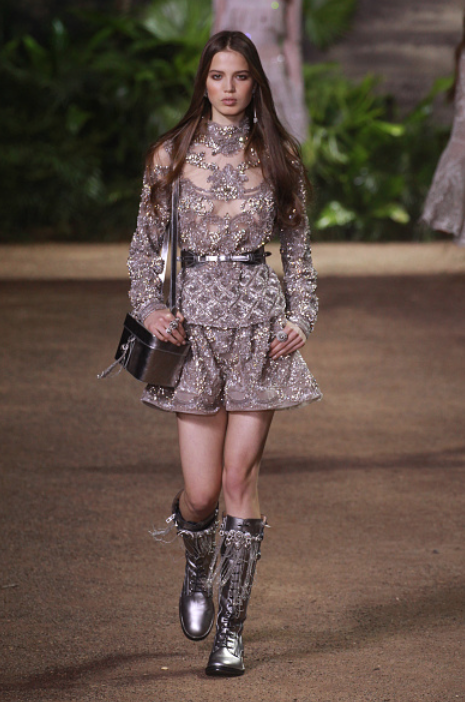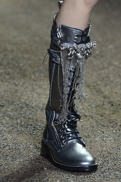 Los vestidos tienen todos un toque victoriano y están confeccionados con cristales, joyería, tul, encaje y transparencias, además de que todas las modelos caminaron con accesorios como tiaras metálicas. Los zapatos nos encantaron, pues fueron botas sin tacón y agujetas en tonos mate y metal.