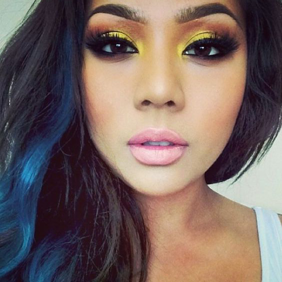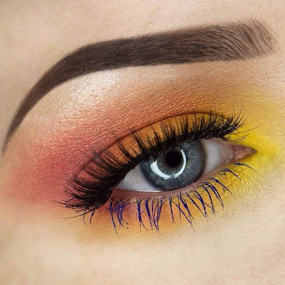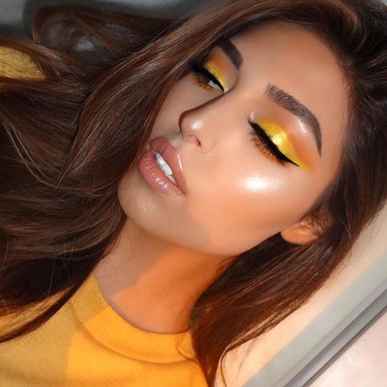 Para las más atrevidas, llega una tendencia que llamará la atención, ya que las sombras amarillas pretenden iluminar y aportar un toque enigmático a la mirada. Es ideal para las chicas que tienen ojos azules, pero si los tienes marrones, no te preocupes, también se verán perfectas en ti si llevas este maquillaje al estilo atardecer con tonalidades naranjas.
