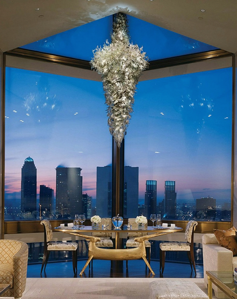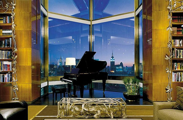 Nueva York, la ciudad del glamour, también cuenta con impresionantes construcciones, sin embargo, una de ellas es el hotel Four Seasons, sobre todo su impresionante suite Ty Warner. A través de increíbles ventanales podrás disfrutar la impecable vista hacia esta ciudad. Tendrás 400 metros cuadrados para disfrutar una noche romántica a la luz de las velas y de la ciudad. El precio aproximado de esta suite es de 45 mil dólares por noche, lo cual está considerado no como un gasto, sino como una hermosa inversión.