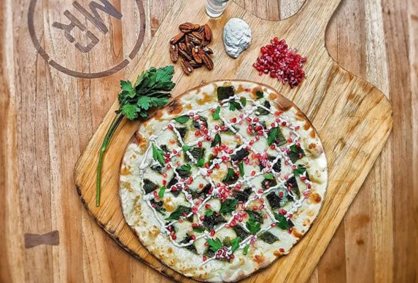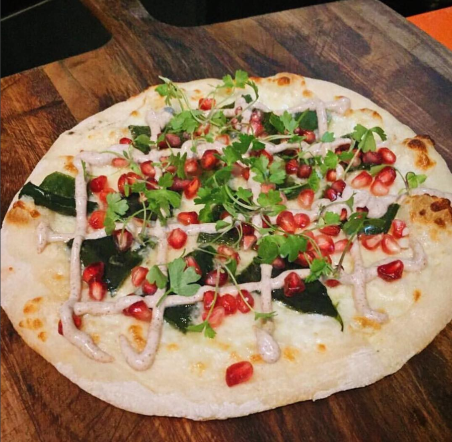 La fusión de comida italiana con mexicana que tanto hemos esperado… En una pizza de masa delgada colocan un poco de chile poblano en trocitos, granada, salsa de nogada, cilantro y queso mozarella. Visítalos en Roma Norte.