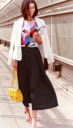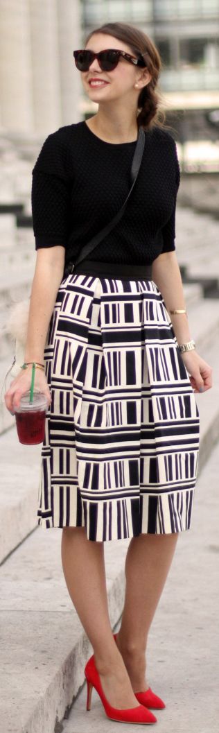 En faldas: Esta combinación es simplemente fabulosa, le dará mucha atención a tu parte inferior, es decir a tus caderas, así que te recomendamos llevar la parte de arriba de tu outfit lo más sobrio que se pueda.
