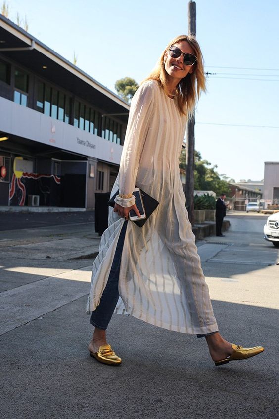 Para las más atrevidas, lo mejor es llevar vestidos vaporosos y sueltos y combinarlos con tacones classy o unos cómodos pantalones.
