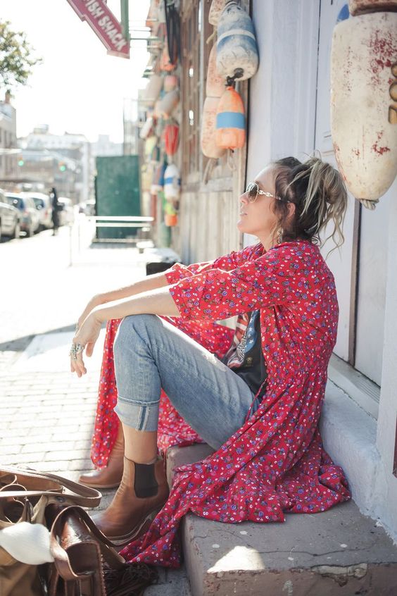 Prueba usando capas floreadas y con flecos (muy al estilo boho) con prendas casuales como pantalones de mezclilla y t shirts.