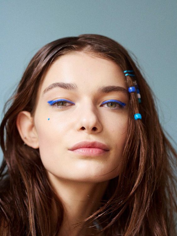 Puedes animarte con esta tendencia ‘denim eyeline’ con cualquier tono de azul, desde el más clarito hasta el más marino. Te recomendamos una línea minimalista o si lo prefieres combinar con plateados para que se haga el efecto glitter que tan de moda está.