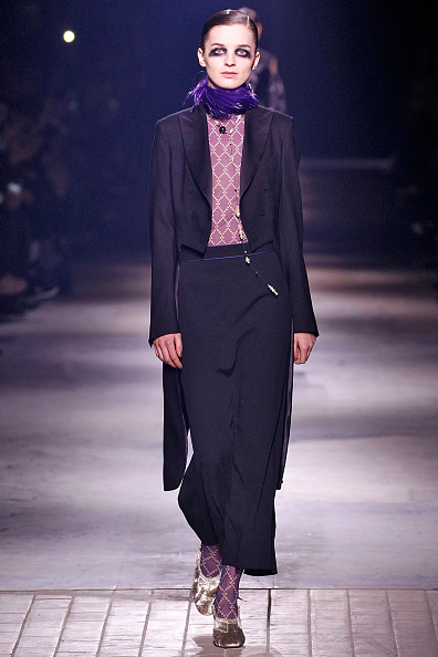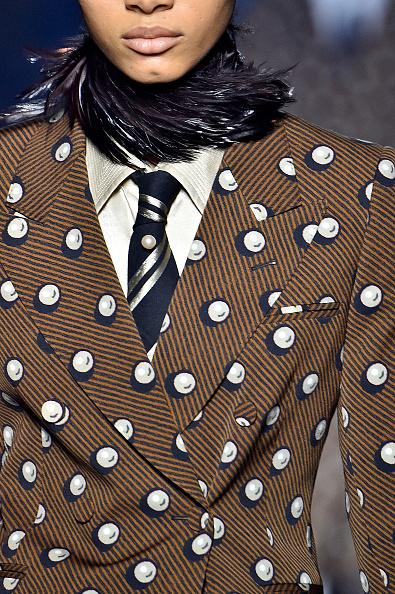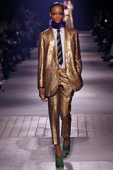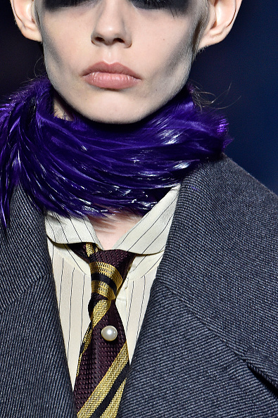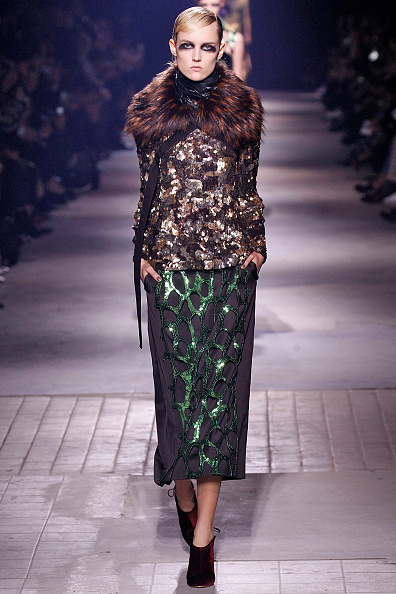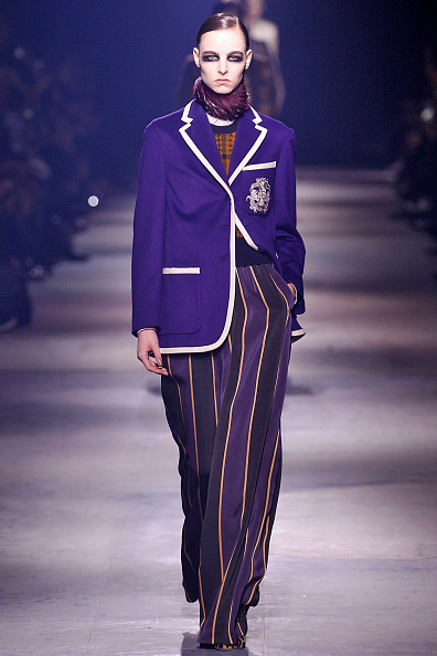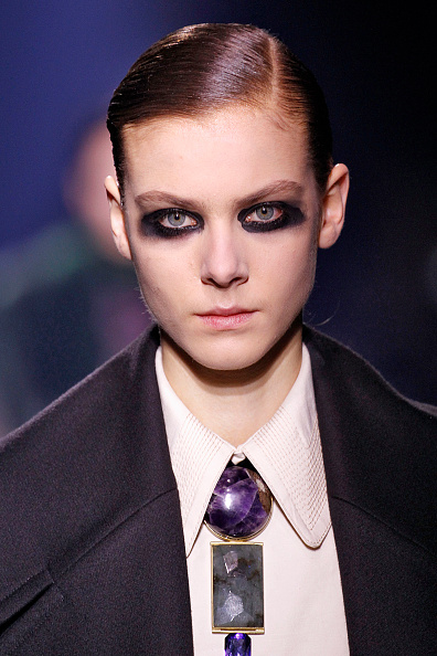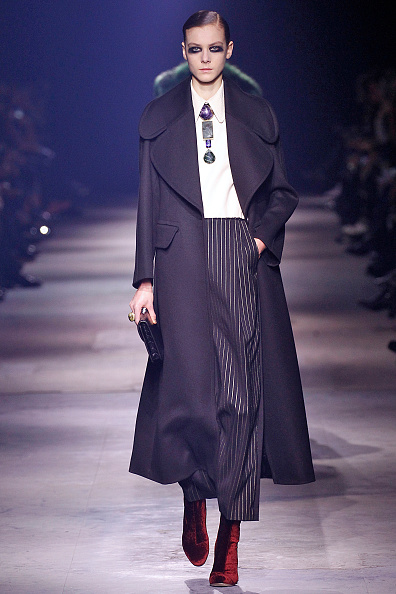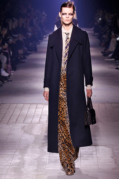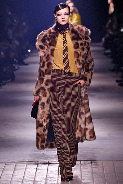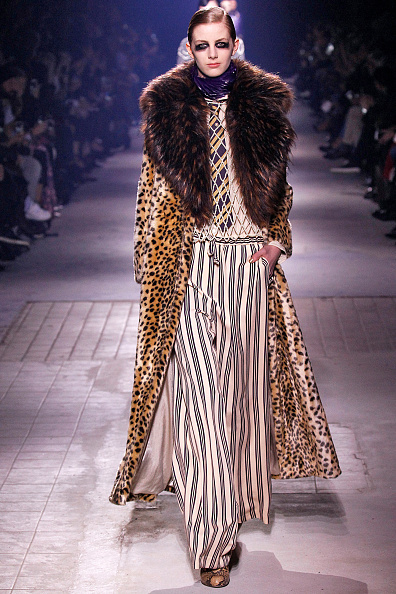 Dries Van Noten: Con un look totalmente boyish, maquillaje tipo lágrimas de acuarela y una pony tail alisada de lado, la firma ofrece un sinfín en variedades de chaquetas, blazers, fur coats, cigarrette pants y camisas de botones. Además de prints que van desde el animal, rayas hasta los polka dots que se hicieron los grandes protagonistas de la colección.