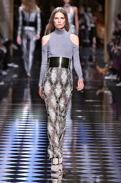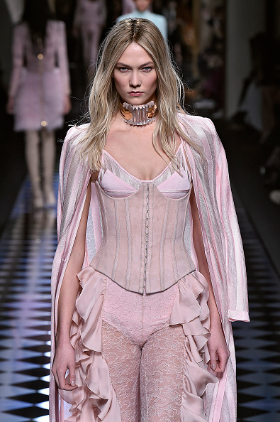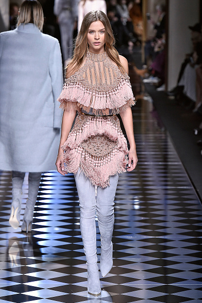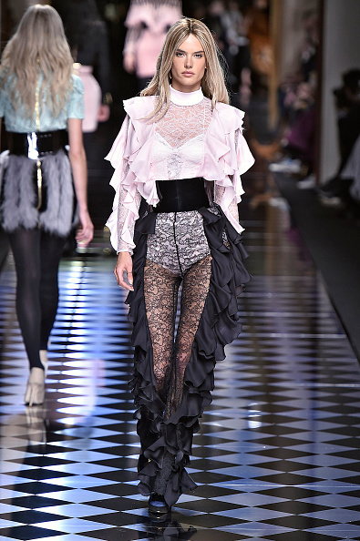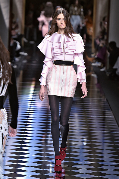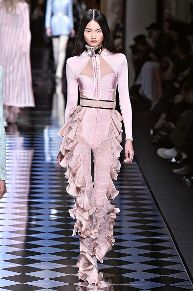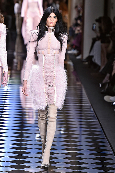 Balmain: Fiel a los tonos que Pantone aseguró harían tendencia este 2016 (azul serenidad y rosa cuarzo), la marca francesa ha sido la más polémica de todas al cambiar el color de las cabelleras de sus modelos. Retomando la línea de encajes y diseños marcados en sus prendas, esta colección se llenó de plumas, movimientos, velvet, botas largas y corsets.