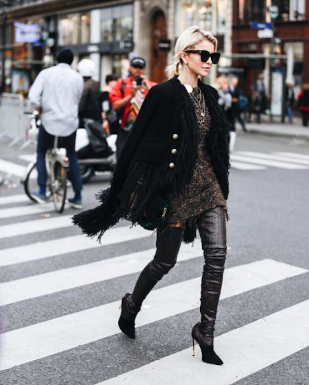 Muchas street stylers optan por look classy pero a la vez trendy en tonos oscuros, brillantes o neutros.