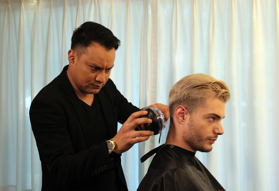 El modelo Veridiano Tesch es la imagen de una campaña de ropa para caballero, por ello siempre debe lucir impecable, así que para el photoshoot de la entrevista con EstiloDF necesitaba un look y un corte de cabello espectacular, pero contaba con poco tiempo.