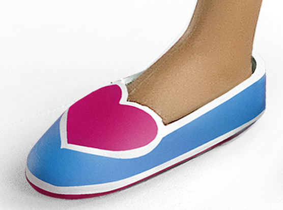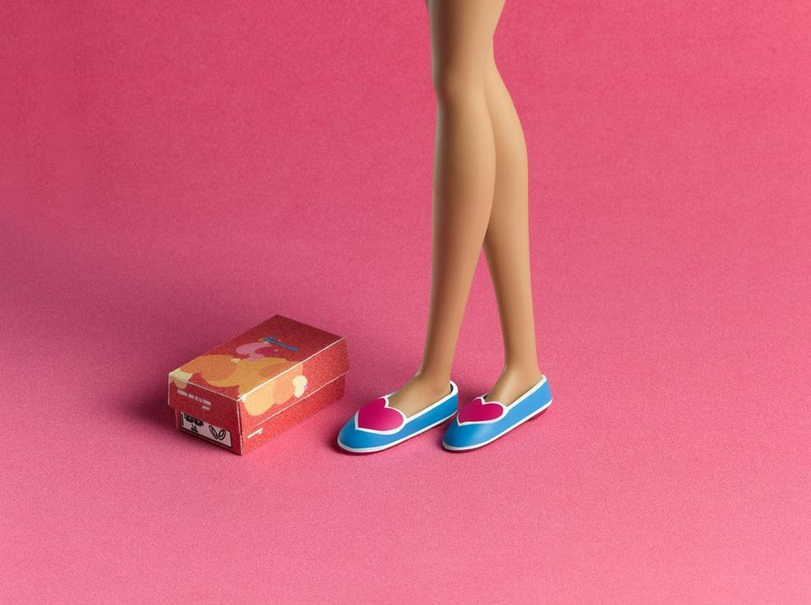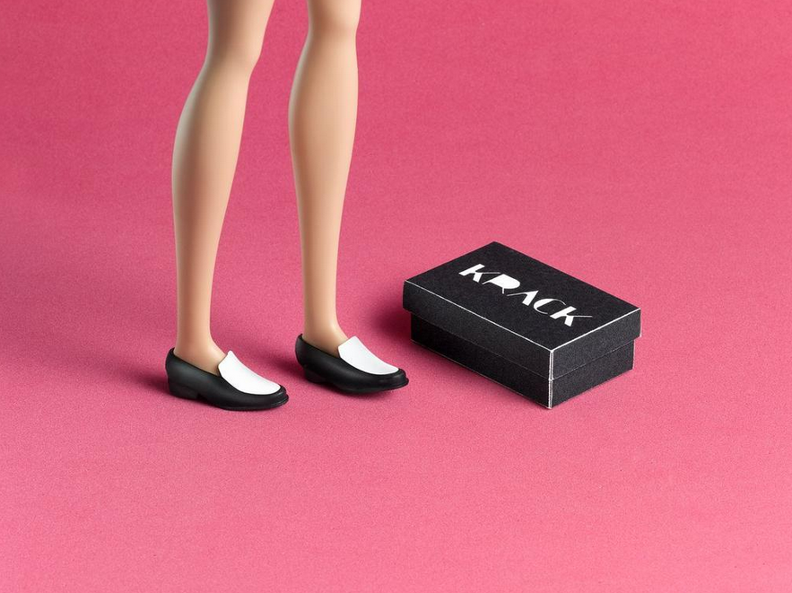 Krack también se formó para ser parte de la historia de Barbie y realizó unos elegantes mocasines blancos con negro en su exterior, pero conservando el estilo rosa la muñeca en su interior.