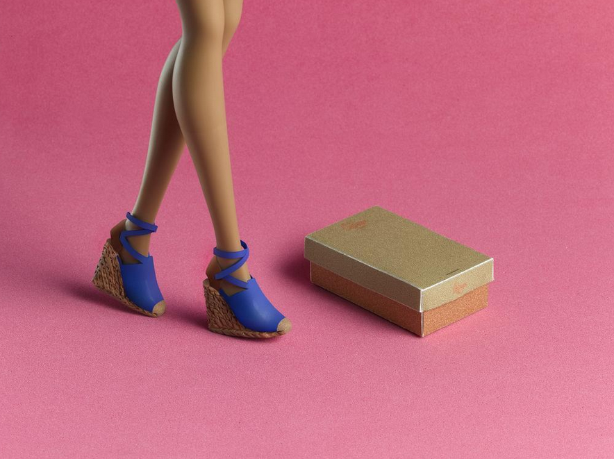 Castañer entra en la nueva colección de Barbie con un lindo toque veraniego, pues le regala a la muñeca unas hermosas alpargatas de cuña en color azul eléctrico que se sujetan a los tobillos con los cordones del mismo tono. Cuenta con unos remates en cuero que le brindan a estos zapatos un toque Premium.