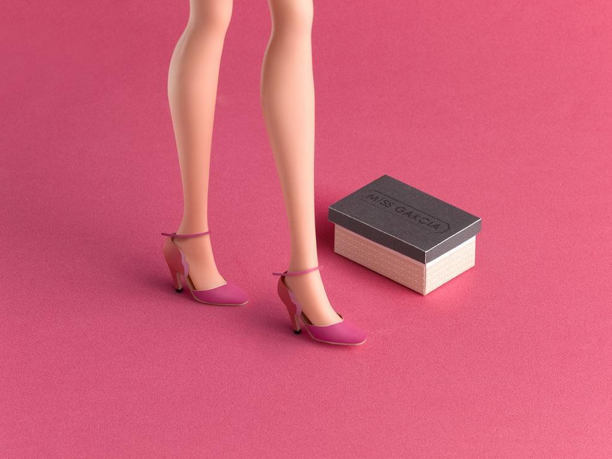 Miss García, la firma de la diseñadora Elena Moreno, también decidió ser parte del cambio de Barbie y realizó unos stiletto en el tono de la temporada, es decir en color coral, haciendo alusión a los primeros años de Barbie.